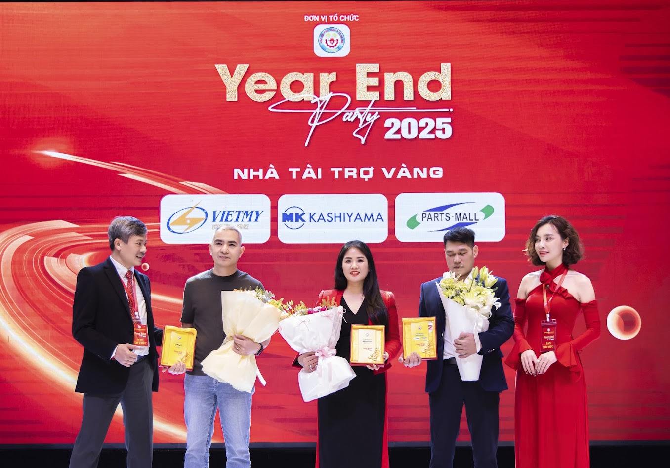 Đại diện các nhà Tài Trợ Vàng: Phụ Tùng Phạm Gia, Phụ Tùng Nam Bắc và Chuyển phát nhanh Tín Thành Phát nhận lưu niệm chương của BTC